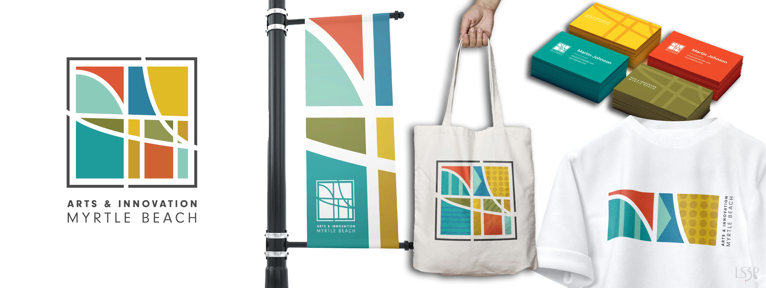 The mission statement we crafted aimed to honor the history of Myrtle Beach's Arts + Innovation District while revitalizing it for future growth, serving the community by celebrating individuality, hard work, and relationships. We spent much of the project researching and meeting with clients and the community, ensuring our designs were grounded in truths that resonated with those who would be most impacted. While the district is still under construction and the longevity of the logo remains uncertain, the process was fulfilling, especially knowing that the community is excited and engaged with the outcome.