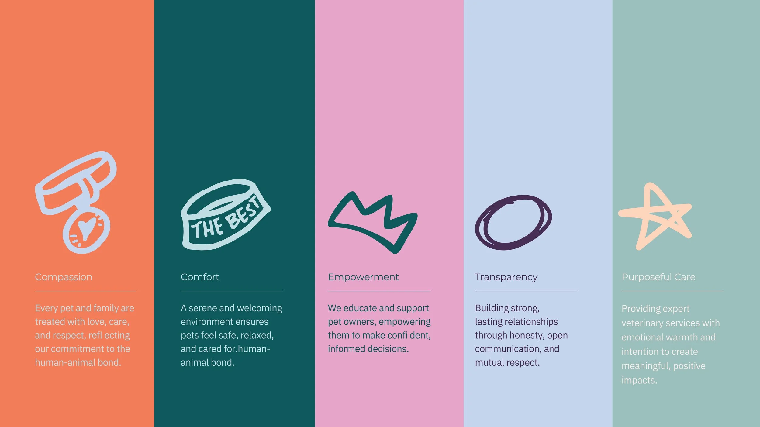 This identity was built to do more than look polished—it was designed to put people and pets at ease. Every detail, from the calm palette to the soft illustrations, supports the clinic’s mission to reduce fear and foster trust. By translating their care philosophy into visuals that feel warm, clear, and reassuring, we helped lay the foundation for a space that speaks before words are ever exchanged.